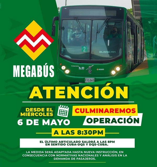 Operación del Sistema de Megabús con nuevo horario de cierre a partir de este miércolesJuan Carlos Sanchezmayo 6, 2020En los últimos días se han venido realizando análisis exhaustivos al comportamiento de ... Leer más