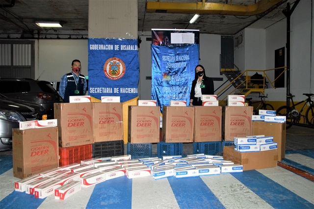 El último informe entregado por la Dirección de Fiscalización y Gestión de Ingresos de la Secretaría de Hacienda de Risaralda, confirmó que en los primeros siete meses del año se ha logrado el cierre de tres establecimientos por comercializar licor adulterado, y se ha logrado la aprehensión de 287 botellas entre licor de contrabando y adulterado, ý 7.994 cajetillas de cigarrillo de contrabando.