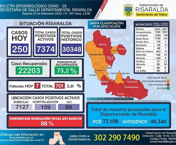 La pandemia ha cobrado la vida de 701 risaraldensesJuan Carlos Sanchezdiciembre 21, 2020La Secretaría de Salud de Risaralda reportó 250 nuevos casos positivos para Covid-19 ... Leer más