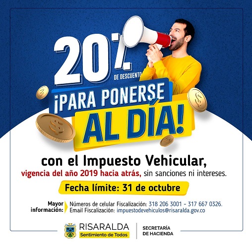 Aproveche el papayazo de pagar el Impuesto Vehicular con un 20 por ciento de descuentoJuan Carlos Sanchezoctubre 16, 2020Para las personas que actualmente tienen deudas con el departamento por concepto de ... Leer más