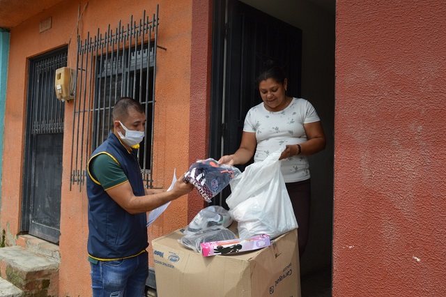 En esta oportunidad, la Secretaria de Mujer, Familia y Desarrollo Social y Prosperidad Social hicieron presencia en el barrio San Carlos para entregar 750 kits familiares.