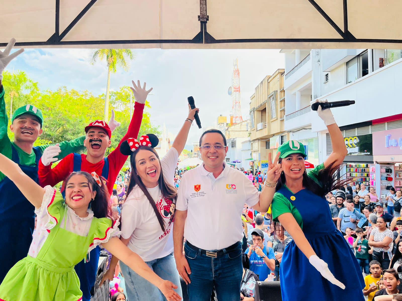 Con la presencia del Alcalde del municipio de Cartago Víctor Álvarez y la Gestora Social Yésica Díaz se celebró el Día del Niño en un evento realizado en el Parque de Bolivar dónde los disfraces, los regalos y la alegría de los niños fueron los grandes componentes de esta importante jornada lúdica y recreativa.