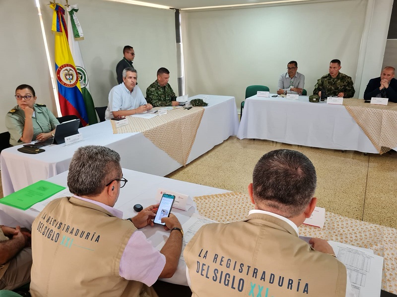 Con el objetivo de garantizar el orden público en Risaralda se llevó a cabo un Puesto de Mando Unificado- PMU, con la presencia del Ministro del Interior Luis Fernando Velasco, donde se definieron las medidas de seguridad y restricciones que de manera articulada se aplicarán en todo el territorio para generar tranquilidad y el buen desarrollo de la jornada electoral de este 29 de octubre, en la que un potencial de 860.918 ciudadanos podrán elegir el nuevo Gobernador de Risaralda, Alcaldes, Concejales, Ediles y las Juntas Administradoras Locales para el periodo 2024 – 2027.