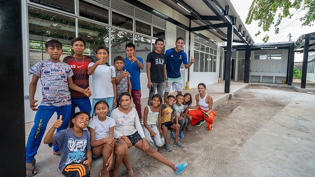 “Ampliar el colegio San Pedro Claver fue un reto para nuestro equipo técnico y para el contratista por los altos costos del transporte y la logística tan compleja. Para traer los materiales fue necesario usar transporte aéreo, terrestre y fluvial. Aquí decidimos instalar estructuras no convencionales que pudimos traer por el río para ensamblarlas finalmente en terreno», explicó José Abraham Castellanos, líder del FFIE en esta región.