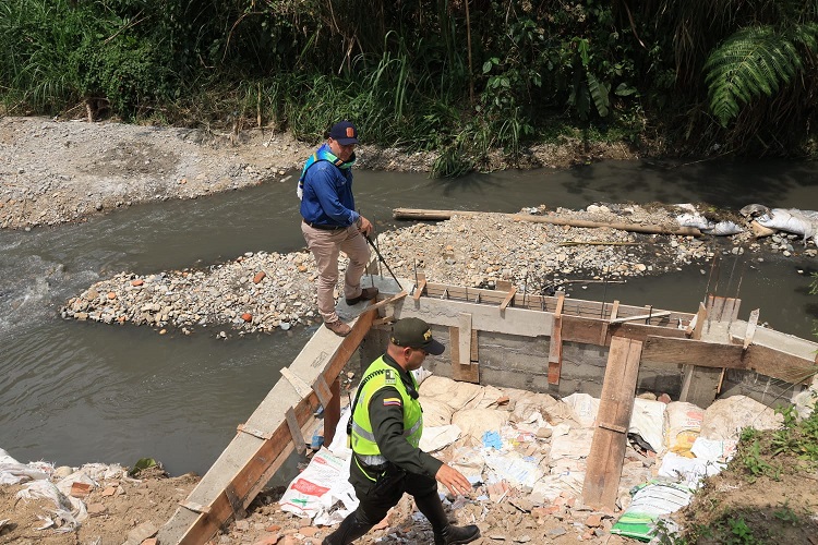 Posteriormente, el equipo se trasladó a la Quebrada Los Frailes en Dosquebradas, donde días antes se habían capturado varias personas por construir en terrenos de dominio público de la quebrada. Éstas construcciones comprometen el cauce de las fuentes hídricas y aumentan los riesgos para las comunidades cercanas.