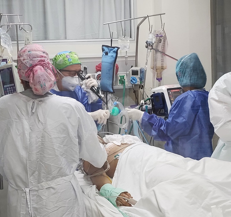 “Con todo el equipo médico se procedió a intubar a la paciente que tenía muy mal pronóstico: embarazada de solo 14 años y con una falla ventilatoria tenía un riesgo de mortalidad muy alto”, explicó la doctora Sandra Ximena Olaya Garay, médica ginecobstetra del Hospital Universitario San Jorge de Pereira. Pero los problemas no pararon ahí: en el tiempo que estuvo intubada la jovencita presentó una hemorragia alveolar, es decir que el pulmón se llenó de sangre y sufrió un paro respiratorio que obligó a desembarazarla. Señaló la doctora Olaya que durante su hospitalización y su permanencia en la unidad de cuidado intensivo obstétrico la expectativa de supervivencia era menor al 10%. Por tanto, se inició el protocolo de pronación, que es colocarla boca abajo por varios días para que oxigenara sus pulmones y saliera adelante. Gracias a la actuación en conjunto de médicos especialistas en neumología, cardiología y anestesiología y al grupo de enfermeras que estuvieron trabajando de la mano, la joven pudo salvarse. La última placa de tórax y la más reciente valoración por neumología indican que sus pulmones se encuentran en estado de recuperación casi que del 90%. “Ella debe seguir manejo por diferentes especialidades, como neumología, inmunología y reumatología que le van a brindar todo el apoyo que necesita y va poder tener una vida sin complicaciones.