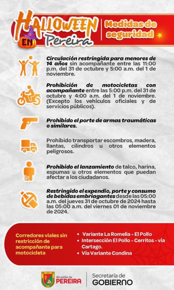 Recomendaciones de la Alcaldía de Pereira en el día de disfracesJuan Carlos Sanchezoctubre 31, 2024La Alcaldía de Pereira entrega recomendaciones a tener en cuenta en el día ... Leer más