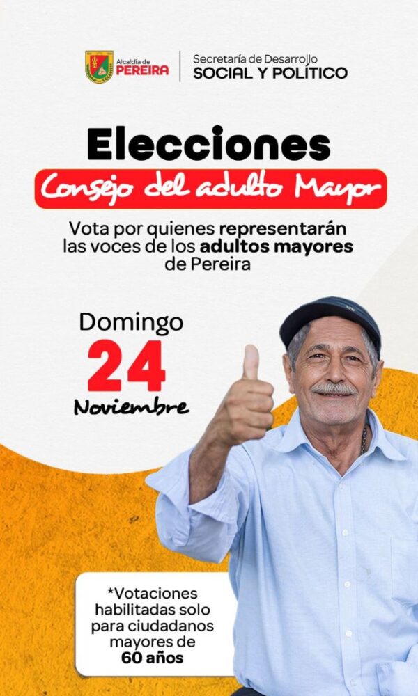 Este domingo serán las elecciones del Consejo del Adulto Mayor en PereiraJuan Carlos Sancheznoviembre 20, 2024La Alcaldía de Pereira, a través de la Secretaría de Desarrollo Social y ... Leer más